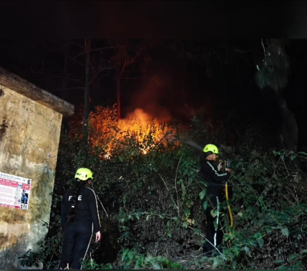 श्रीनगर : 11 मार्च 2026 को रात्रि में फायर यूनिट श्रीनगर पर MDT के माध्यम से सूचना प्राप्त हुई कि पराग डेरी श्रीनगर के पास जंगल में आग लगी हुई है।, जो तेजी से आस-पास फैल रही है। सूचना प्राप्त होते ही प्रभारी फायर यूनिट के नेतृत्व में फायर टीम तत्काल घटनास्थल के लिए रवाना हुई। घटनास्थल पर पहुंचकर देखा गया, आग एस.एस.बी. फायरिंग रेंज के पास जंगल क्षेत्र में लगी हुई थी, जो तेज़ी से फैलते हुए निकटवर्ती आवासीय बस्ती की ओर बढ़ रही थी। स्थिति की गंभीरता को देखते हुए फायर सर्विस टीम द्वारा त्वरित कार्रवाई करते हुए MFE के माध्यम से पंपिंग का कार्य शुरू किया गया। साथ ही फायर कर्मियों द्वारा बीटिंग मेथड (झाड़ियों/टहनियों से मारकर आग बुझाने की विधि) का प्रयोग करते हुए आग को पूरी तरह नियंत्रित कर बुझाया गया। फायर टीम की त्वरित प्रतिक्रिया एवं प्रयासों से आग को समय रहते बुझा लिया गया, जिससे आवासीय क्षेत्र में संभावित बड़ी घटना होने से बचाव हो सका