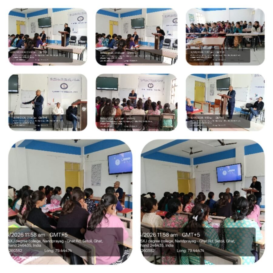 नंदानगर : शहीद जगदीश प्रसाद पुरोहित राजकीय महाविद्यालय नंदानगर, चमोली में कैरियर काउंसलिंग के तहत एक दिवसीय कार्यक्रम आयोजित किया गया। कार्यक्रम के मुख्य वक्ता डॉ अभिषेक विक्रम ने भविष्य में कैरियर की संभावनाएं संबंधित विषय पर अपना व्याख्यान दिया। पहाड़ी क्षेत्रों में रोजगार के अवसरों पर वक्ता ने छात्रों को जानकारी दी। स्नातक स्तर के पश्चात महाविद्यालय के छात्रों के लिए किन किन संभावित क्षेत्रों में अवसर हो सकते हैं तथा तैयारी किस प्रकार की जा सकती है,कैरियर ट्री के माध्यम से डॉ विक्रम ने जानकारी दी। इस अवसर पर प्रो. विद्याशंकर शर्मा(प्राचार्य), संयोजक डॉ आशु रौलेट,डॉ दीपा, डॉ अब्दुल अहद, महाविद्यालय के समस्त कर्मचारीगण एवं छात्र उपस्थित थे।